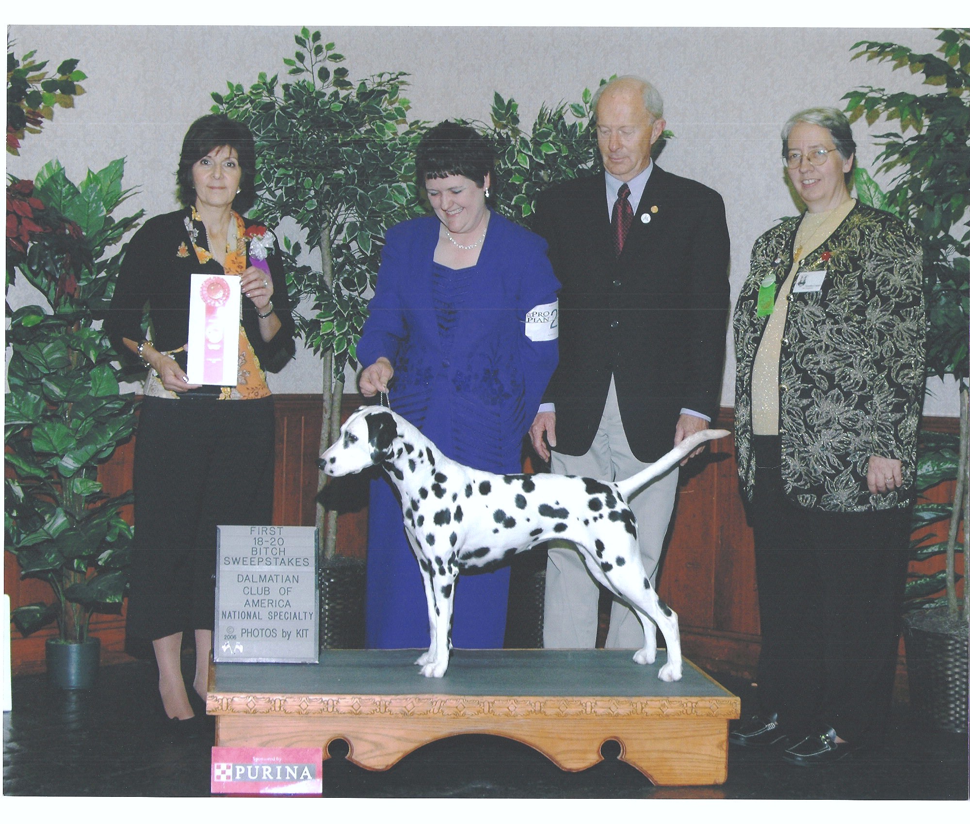 Gr.Ch. McDottie's Tasting the Rainbow - Skittles is the daughter of Irish Jigs and Kelly. Skittles has her AKC championship and Grand Championship. She finished her AKC championship at the Dalmatian Club of the Finger Lakes Specialty in 2009 as a young girl at 16 months old!! She already won a Non-Sporting Group 2nd as a puppy!!! She has more Group placements. She has already produced champions and grand champions. She finished her Bronze Grandchampionship in AKC.