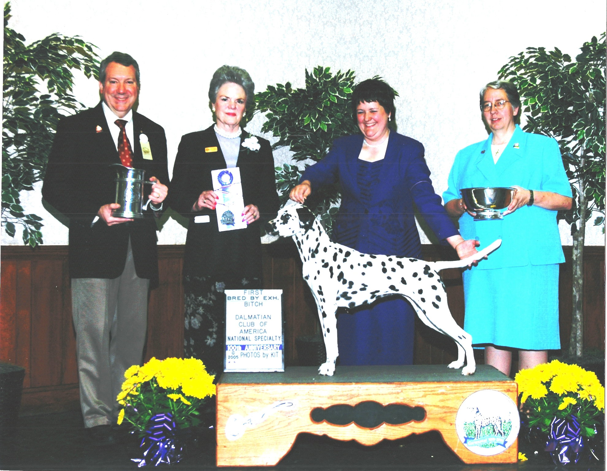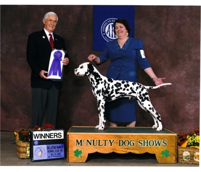 Am. Ch./Can. Ch. McDottie Confetticini Scout, CGC, TT, TDI - Confetti is the first generation of McDottie Dalmatians. She is the daughter of Scout and Penny Fairlady Moonlight. Her accomplishments include titles in conformation, Canine Good Citizen, Therapy Dog, and Temperament Tested. CHIC health certified with OFA Good hips, BAER bilateral normal hearing, etc. She produced champions with different sires. She won Best in Show and Reserve Best in Show on the same day at 2 National Canine Association Shows. She had group placements, and Best in Match wins. Confetti produced all BAER bilateral normal puppies except one through the years. She passed at 13 yrs old of old age.